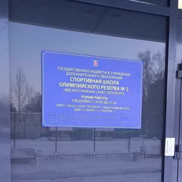 - Государственное бюджетное учреждение дополнительного образования спортивная школа олимпийского резерва№2 Невского района Санкт-Петербурга, Санкт-Петербург, ул. Подвойского, дом 31/3 лит.И