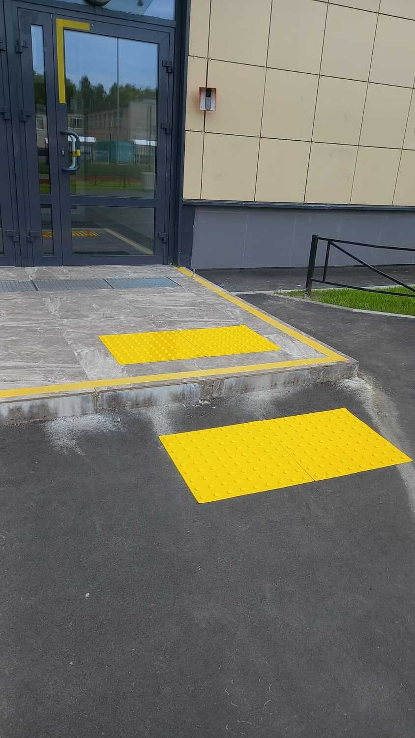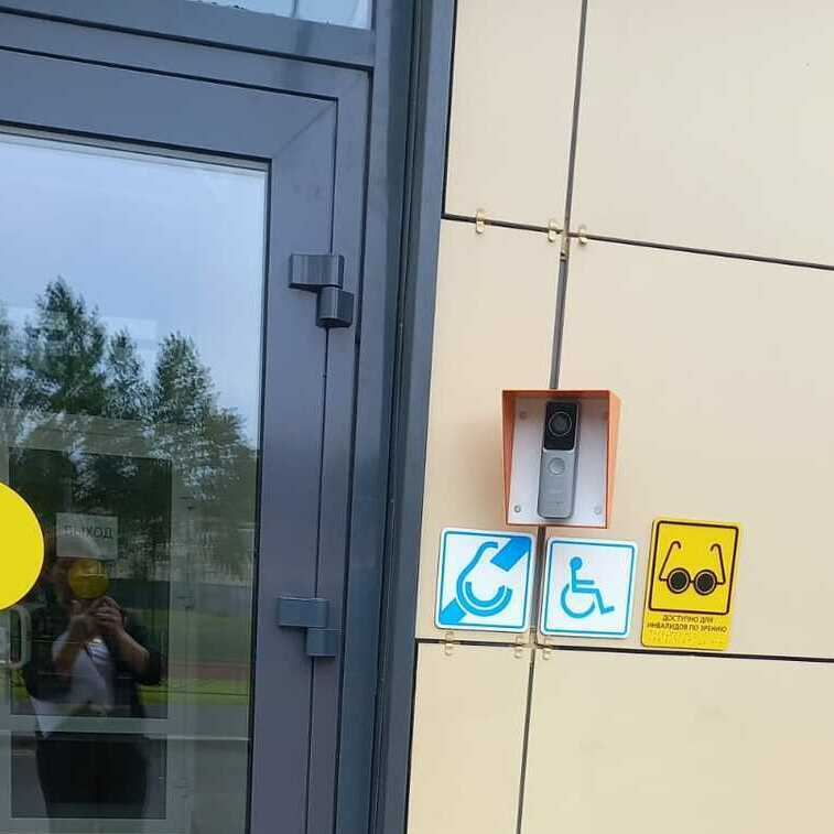 Расстояние от калитки до крыльца 28 метров, до пандуса с кнопкой вызова персонала 42 метра.
